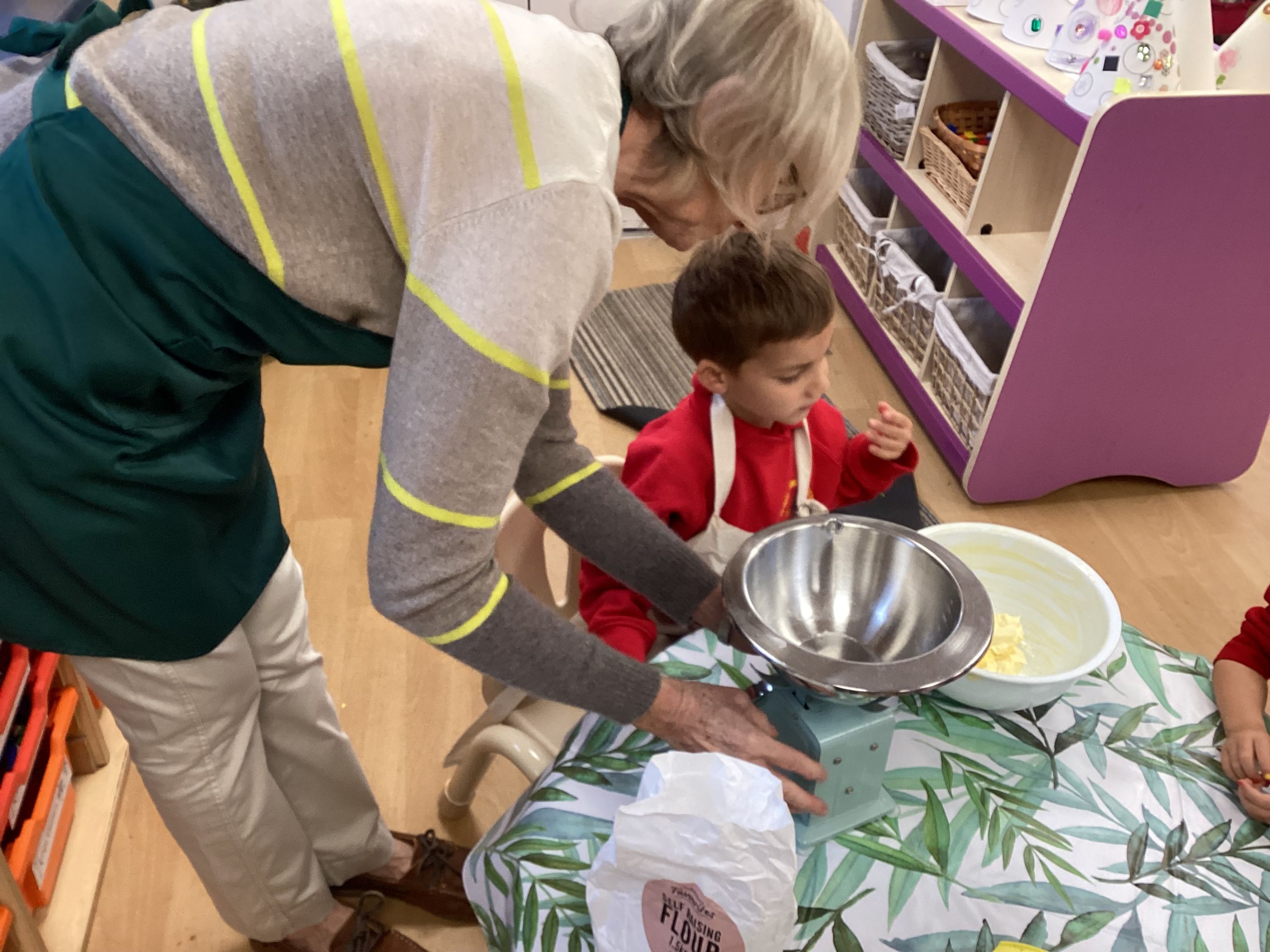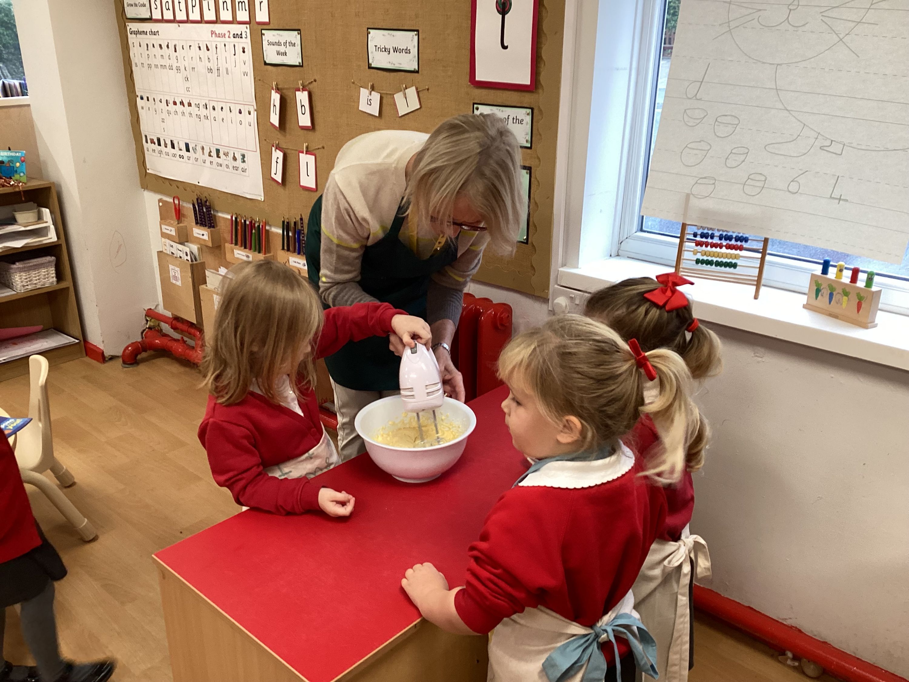 Mrs Hemus brought in a delightful book filled with imaginative children’s birthday cakes. So, whilst waiting for their cakes to bake, our young bakers pored over the pages, pointing out their favourites and dreaming up what they might request for their next birthday. From penguin cakes to rainbow towers, the ideas were as colourful as the icing!