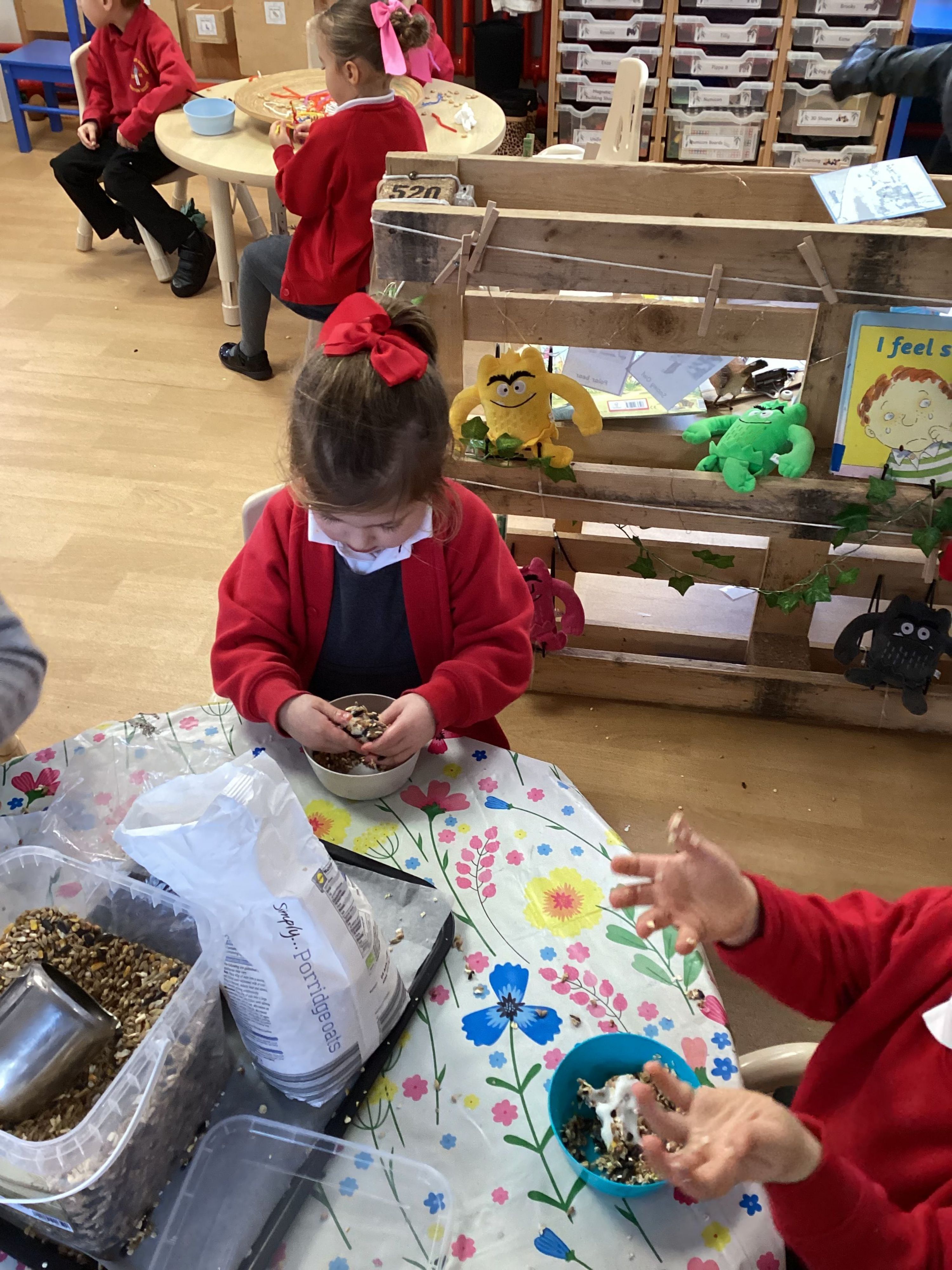 - Making fat balls and bird cakes with Mrs Humus to help our local birds keep their energy up during the cold months.