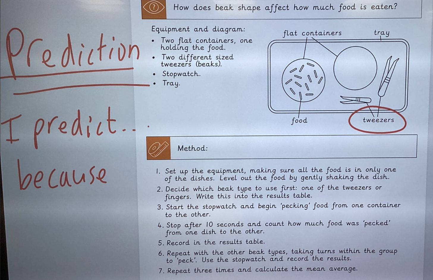 Using a selection of “beaks” — in this case, different tweezers and fingers — pupils took on the role of different bird species. Their challenge was to work out which type of beak was best suited to a range of food sources.