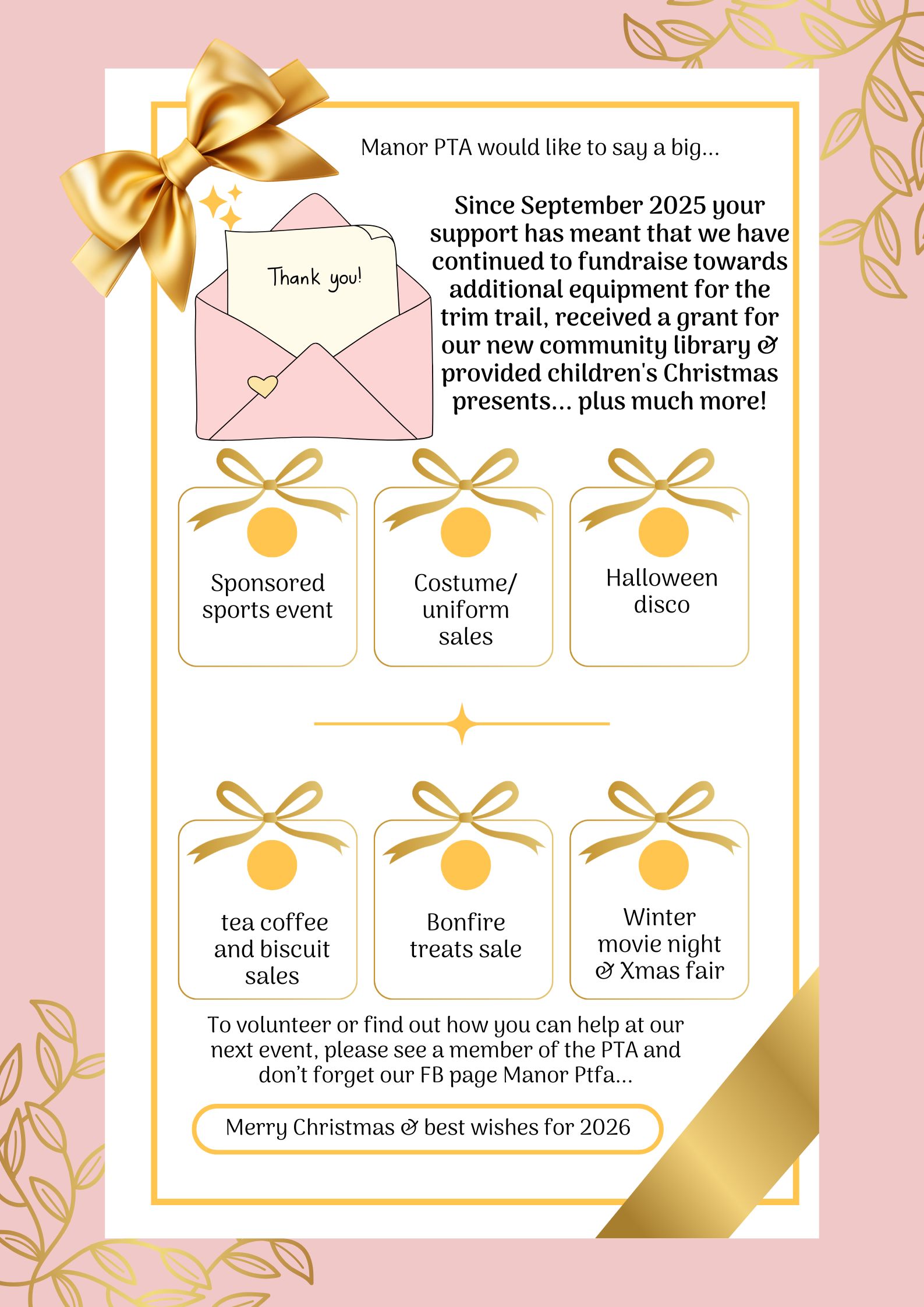 All at Manor would like to wish you a wonderful festive period. We hope you get what you want for Christmas, whether that is a time of peace and quiet, noisy celebration or something in-between!