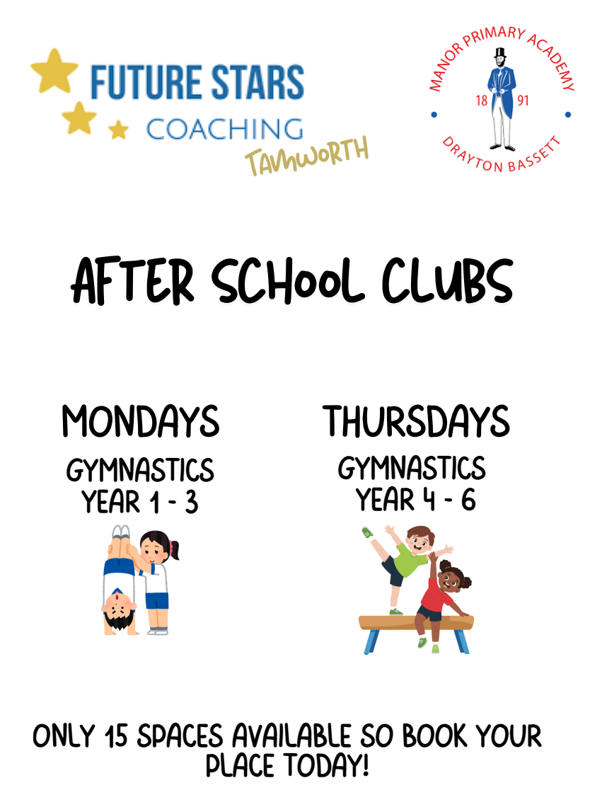 Next half-term, Millie and Ronnie are going to be delivering a gymnastics club for Years 1–3 on a Monday and Years 4–6 on a Thursday. Places can be booked on Arbor on a first-come, first-served basis.
